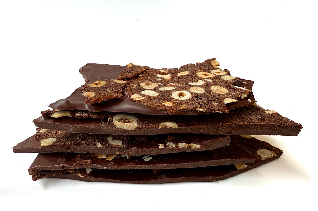 Deeply delicious expressions of chocolate joined together into a dark chocolate dream. One side an impossibly lacy chocolate wafer dotted with roasted Hazelnut stars; on the flip side is Semuliki forest chocolate (a fan favourite) made with cacao from Uganda.